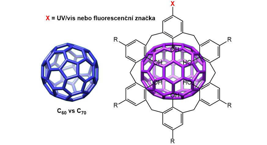 Práce je zaměřena na studium syntézy a vlastností větších calixarenových derivátů s pěti a více fenolickými jádry, jež by bylo možné využít jako receptory pro komplexaci fullerenů C60 nebo C70 s využitím principů (konkávní versus konvexní) supramolekulární chemie. Cílem práce je zabudování odpovídající funkční skupiny do molekuly calixarenu, která by fungovala jako spektroskopická (fluorescence, UV/vis) značka pro vizualizaci komplexačního děje. Připravené deriváty budou využity nejen jako receptory pro komplexaci fullerenů, ale také pro konstrukci složitějších supramolekulárních struktur (self-assembly).