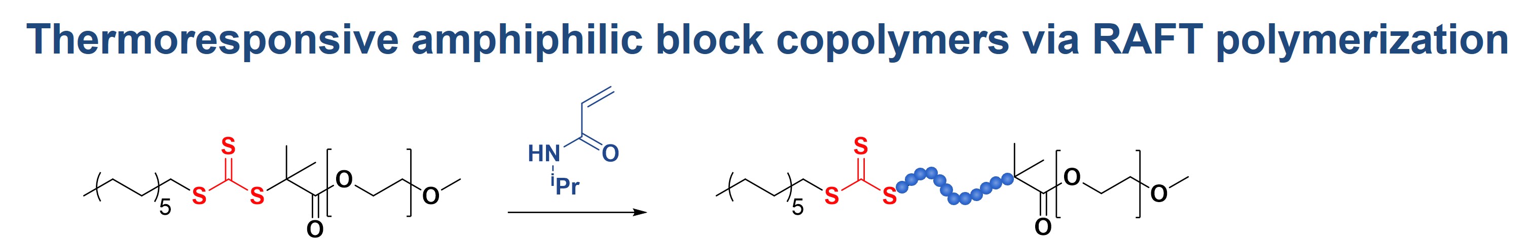 Double-hydrophilic block co-polymers, in which one block displays responsivity toward external cues such as, e.g., pH, temperature, or light are of interest for the development of nanocarriers of drugs, nano(bio)sensors, and nanoscale machines. This project aims at synthesizing poly(N-isopropylacrylamide)-block-poly(ethylene glycol) copolymers with trithiocarbonate w-end terminals. These polymers provide temperature-responsive properties due to a lower critical solution temperature of one of the blocks, as well as affinity toward noble metal surfaces because of their trithiocarbonate end groups. This enables the formation of highly functional gold/polymer hybrid nanoparticles