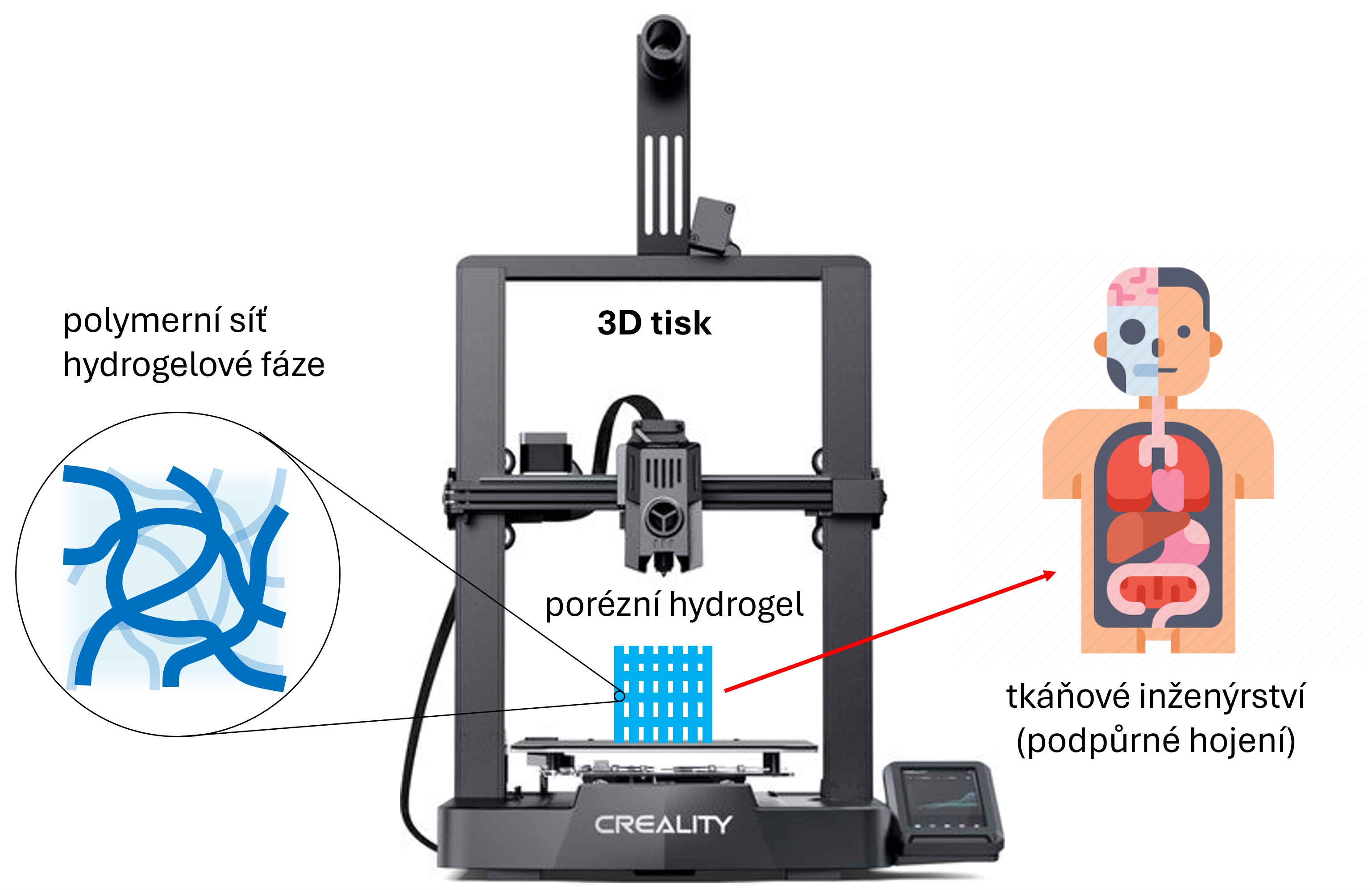 Práce je součástí zavádění základních technologií 3D tisku v nové laboratoři hydrogelů na Ústavu polymerů. Student si osvojí základní práci v modelovacích programech a využije prekurzory na bázi poly(benzyl L-glutamátu) pro 3D tisk na modifikované filamentové tiskárně. Vytisknuté porézní matrice budou charakterizovány co do morfologie (tisková věrnost) a mechanických vlastností. Polymerní prekurzory budou k práci poskytnuty, ale v případě zájmu a dostatku času se student může věnovat i jejich syntéze.