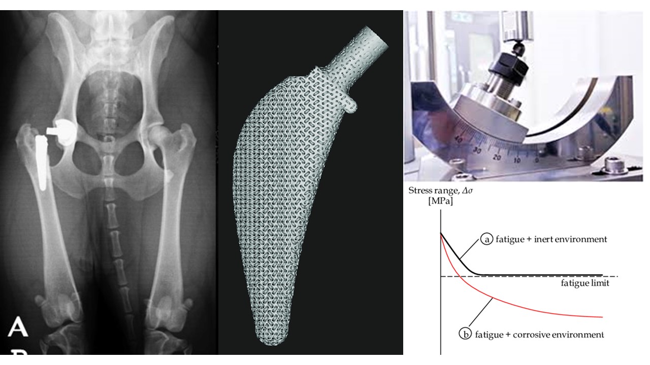 Pro zlepšení srůstu s kostí a zabránění odmítnutí implantátu organismem vlivem "stress-shielding" efektu jsou na povrchu implantátu vytvářeny pórovité struktury. Optimální možností je gyroidní struktura s izotropními mechanickými vlastnostmi. Kritickou otázkou trvanlivosti implantátu v těle je však korozně únavové selhání vyvolané cyklickým namáháním při pohybu. Cílem práce bude charakterizace kritických mechanických napětí na matariálu v synergické součinnosti s korozním působením tělního prostředí.