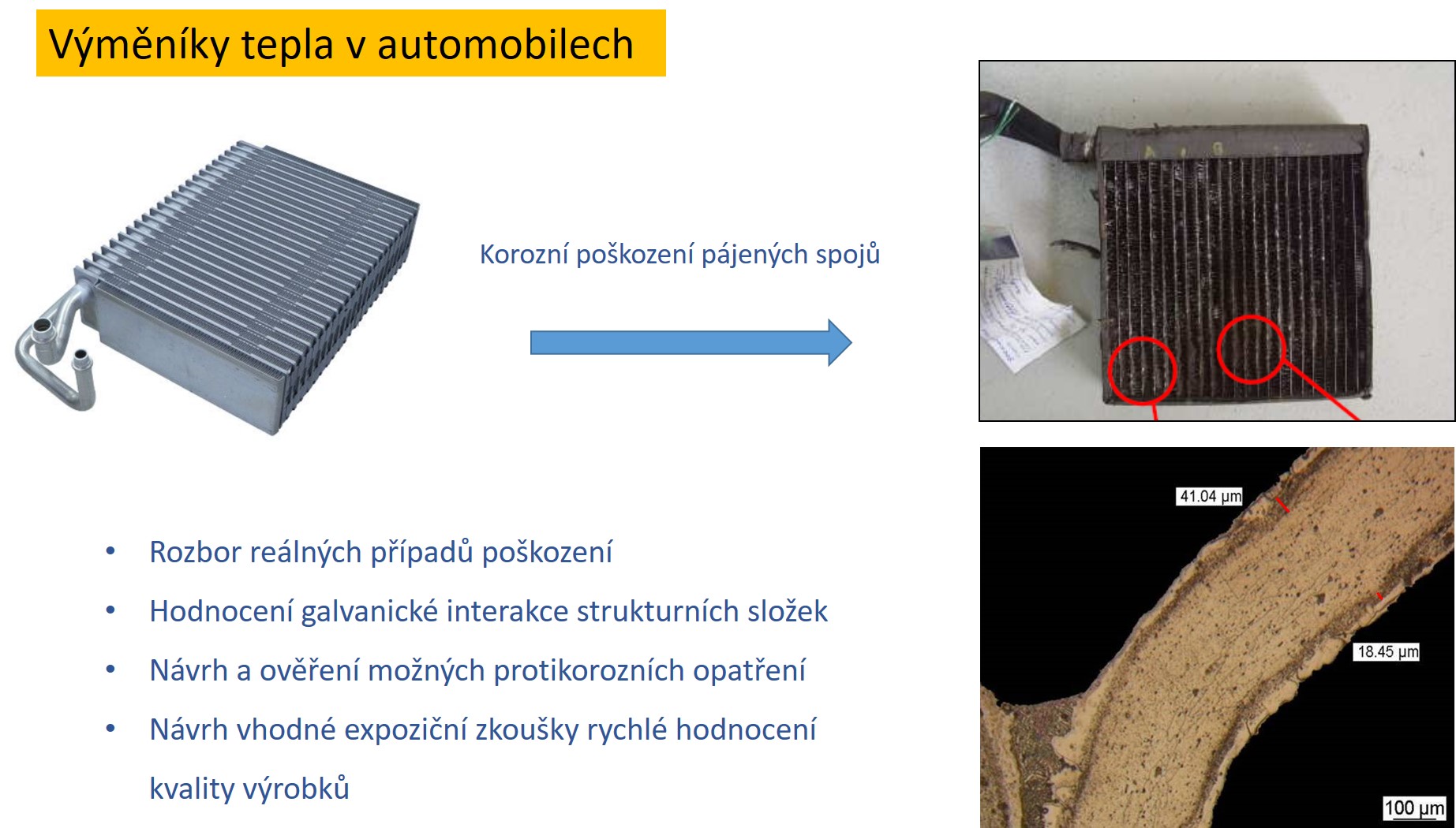 Spravná funkce tepelných výměníků automobilových klimatizací je klíčová pro zajištění komfortu cestujících. Příčinou selhání je často koroze pájených spojů. Práce má za cíl odhalit mechamizmus poškození pájených spojů a návrh vhodných protiopatření.
