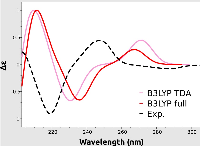 Pro popis farmaceutických látek je důležité popsat její chiralitu. Jednou z možností identifikace chirality je výpočet teoretického cirkulárně-dichroického (CD) spektra a jeho srovnání s experimentálně naměřenými CD spektrem.