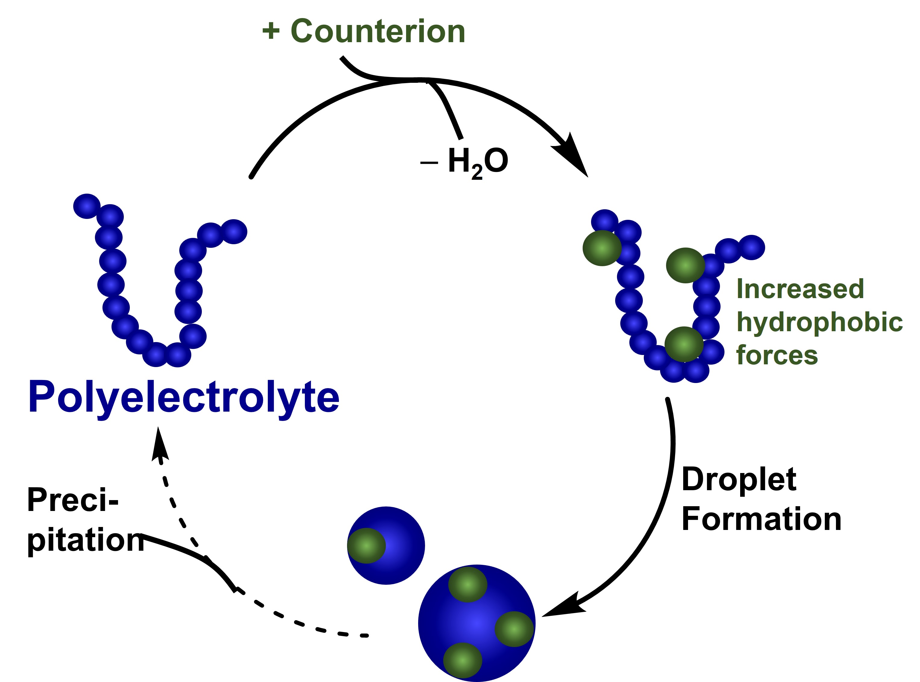 Roztoky obsahující polyelektrolyty a (multivalentní) protiionty mohou vykazovat fascinující chování: střídavé změny mezi čirým a zakaleným roztokem. Za účelem objasnění tohoto chování budou provedeny kinetické simulace, které systematicky prozkoumají vliv jednotlivých rychlostních koeficientů na frekvenci oscilací, jejich počet a poměr rozptylové intenzity mezi „čirým“ a „zakaleným“ stavem.